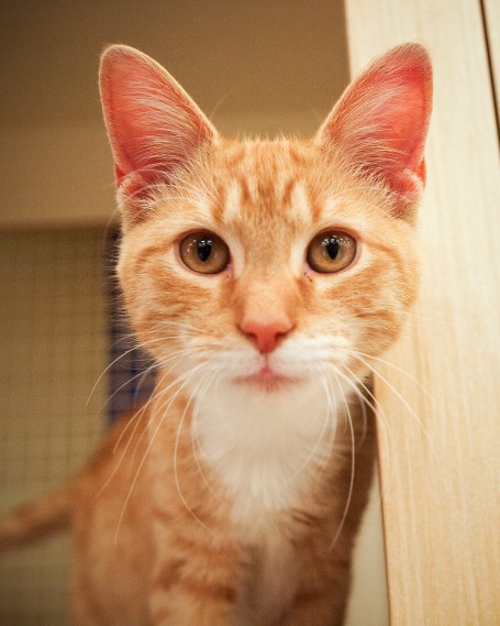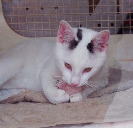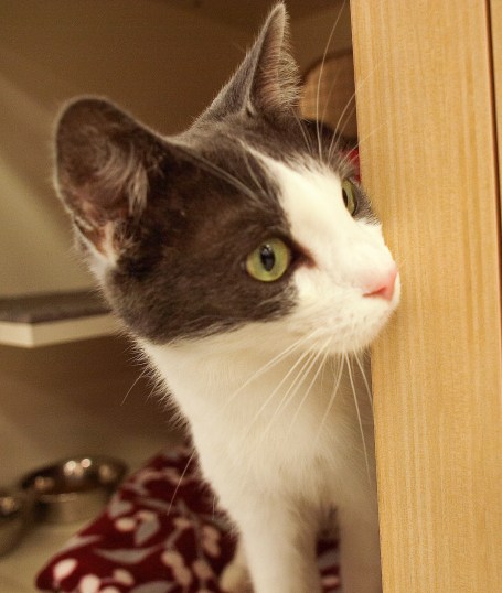 This is Knick. He is about three months old and hopes to get a home soon. He is very sweet and friendly and loves attention. You can meet him at Petco on 25th street in Easton, PA.  UPDATE: Adopted!